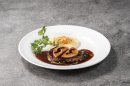 きめ細かく柔らかい肉質で、噛むほどに程よいジューシーさと牛本来の澄んだ旨味が広がった牛フィレ肉に、焼き加減にこだわってグリルしたグラフォアを重ね、バルサミコソース、トリュフソース、トリュフオイルを合わせた香り豊かなステーキとなっています。