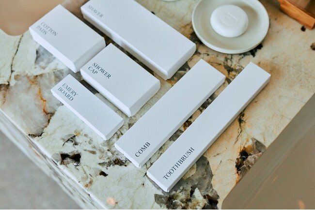 ザ・リッツ・カールトン日光では、プラスチック削減に寄与するアメニティが導入されています。枯渇しない唯一の循環素材である竹を使用した竹歯ブラシ、竹ヘアコーム、持ち手部分が竹素材で出来た綿棒を採用するほか、パッケージにはFSC認証を取得した紙素材をし、プラスチックをできる限り減らした素材を使用しています。サステイナビリティに移行してもザ・リッツ・カールトンの高級感を損なわない設計になっています。