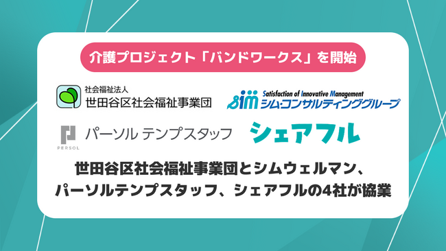 『世田谷区社会福祉事業団』と『シムウェルマン』、『パーソルテンプスタッフ』、『シェアフル』の4社が連携し、要介護者を抱える方々を支援する新プロジェクト「バンドワークス」※1を開始いたしました。
