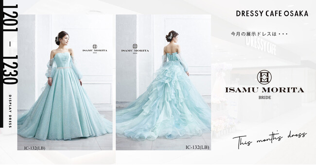 【DRESSY CAFE OSAKA】12月のディスプレイドレスは「ISAMU MORITA BRIDE」のウェディングドレスを期間限定でお届けいたします。