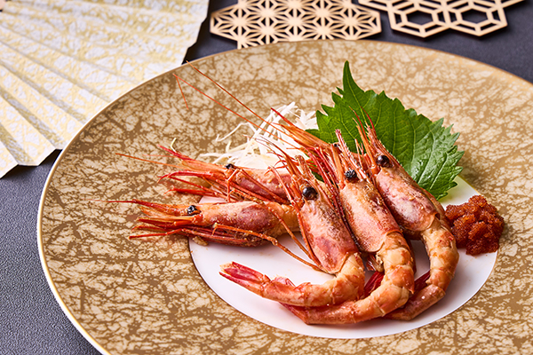 北陸産の甘海老を、紹興酒を効かせたタレに醤油と砂糖、香りづけの山椒を加えて漬け込み、ふっくらと蒸し上げました。紹興酒の豊かな香りとコクが広がり、甘海老のとろけるような旨みを際立たせます。