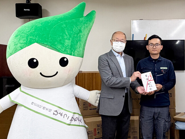 橋本組公式キャラクター「ひょっこりちゃん」も登場し、和やかな贈呈式となった