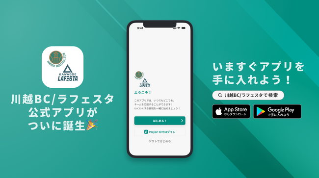 AppStoreもしくはGooglePlayで「KAWAGOE BC / ラフェスタ川越」と検索!