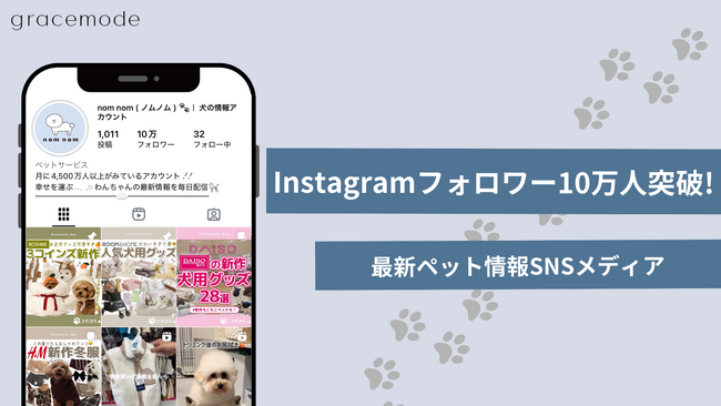 株式会社gracemode(本社:東京都目黒区、代表取締役:木上実乃里)が運営するペットメディアアカウント「nomnom-ノムノム-」は、2025年11月時点でInstagramのフォロワー数が10万人を突破したことをお知らせいたします。