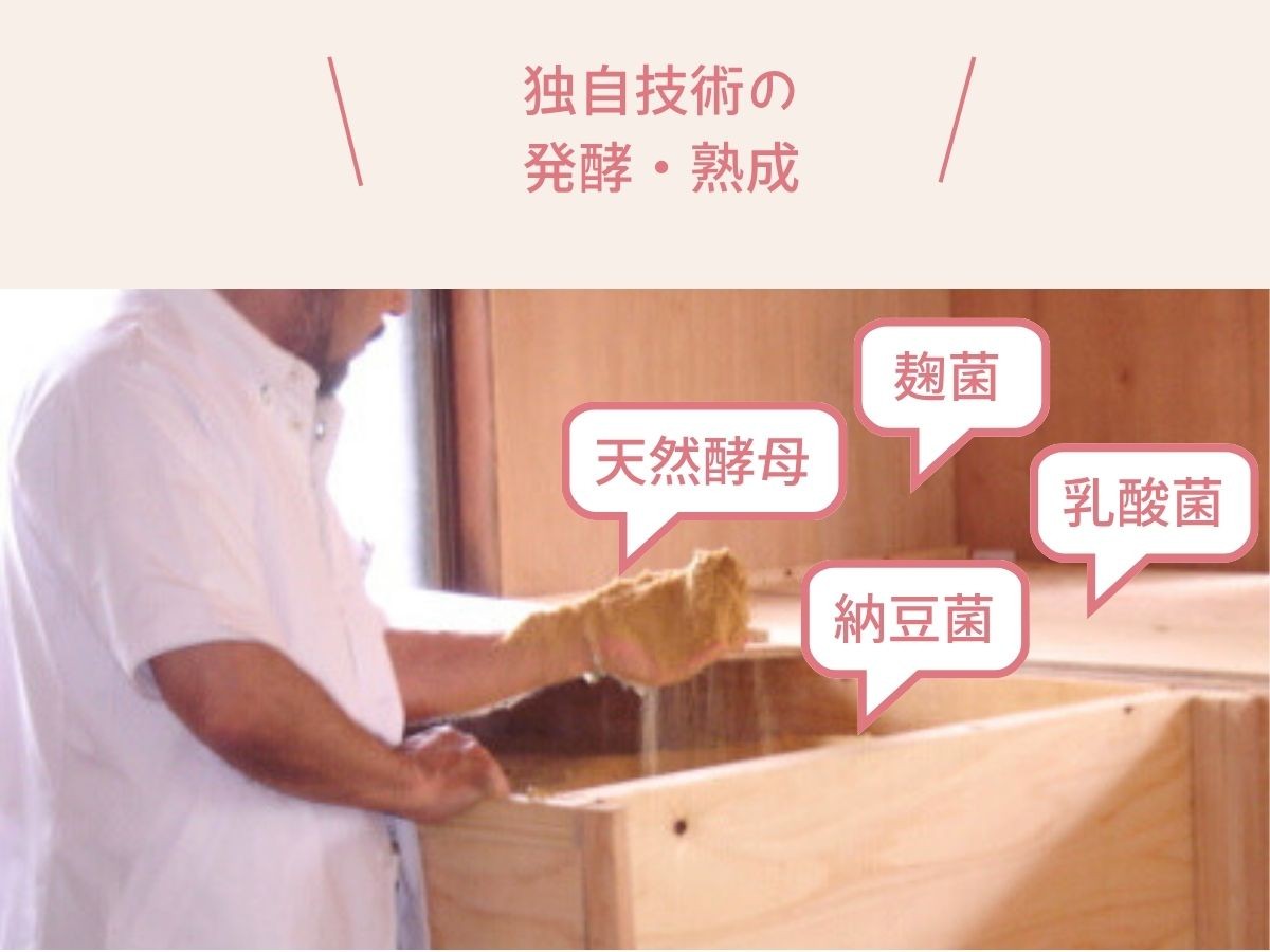 天然酵母や乳酸菌、麹菌・納豆菌などを加え、独自の技術で3か月かけて米ぬかを発酵・熟成させています。