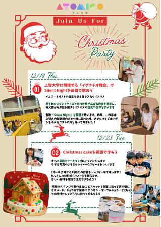 スパトレ株式会社(本社:東京都千代田区、代表取締役:向井麻里絵)は学童保育型英語スクール「atomico」にてクリスマスイベントを開催いたします。
