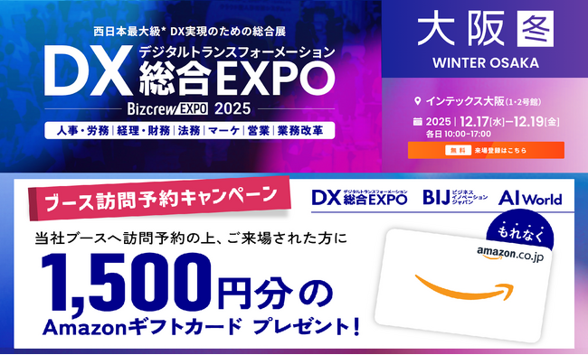 ・展示会URL :DX 総合EXPO 2025 冬 大阪(https://www.bizcrew.jp/expo/dx-osaka)