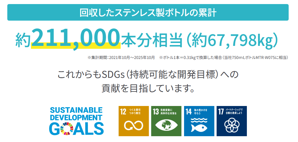 【ステンレス製ボトルの回収と再資源化】プロジェクト開始から4年間で約21万本分以上を再資源化へ