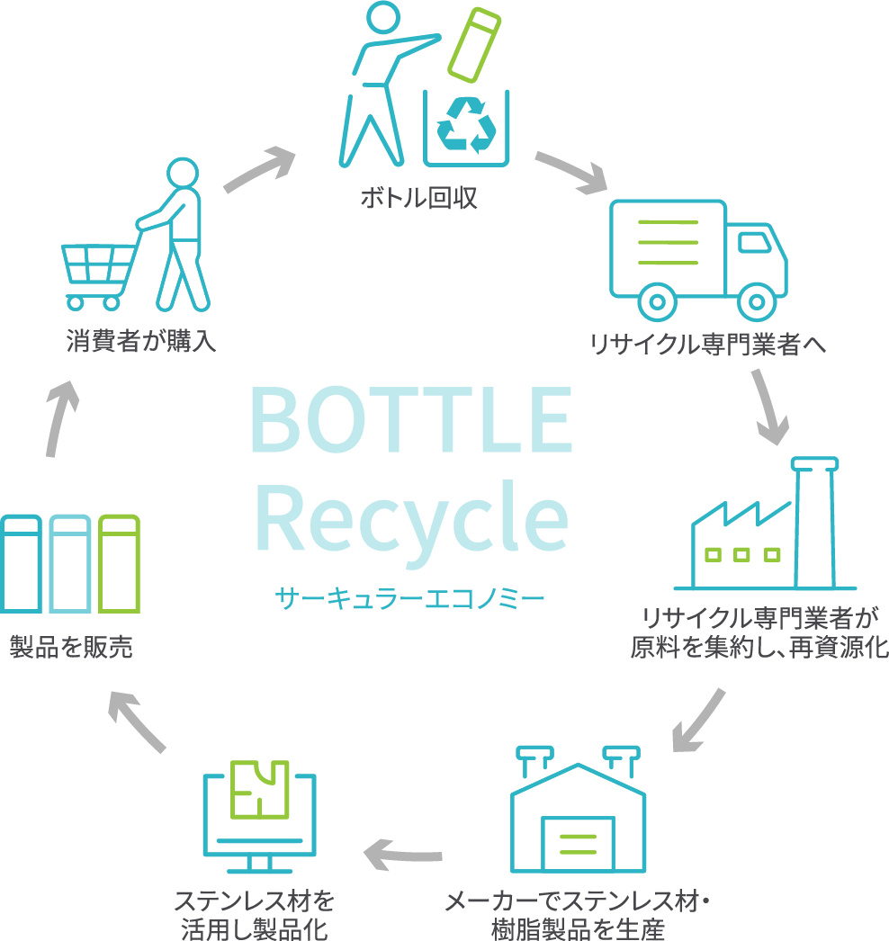 [画像4: https://prcdn.freetls.fastly.net/release_image/27804/377/27804-377-eeaec8ff2fd7b5ccf0e85c3114f2aefd-753x376.jpg?width=536&quality=85%2C75&format=jpeg&auto=webp&fit=bounds&bg-color=fff ]【ステップ1】ステンレス製ボトルの回収ご家庭で不要になったステンレス製ボトルの回収ボックスを全国500ヵ所以上に設置。まとめて回収することができれば、効率的なリサイクルにつながります。また、不純物の混入が抑えられるので、純度の高いステンレス原料を確保することができます。