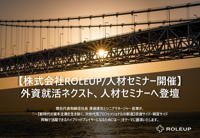 この度、株式会社ROLEUP 代表取締役社長 渡邉とシニアマネージャー 前車が、外資就活ネクスト主催のオンラインセミナーに登壇する運びとなりました。