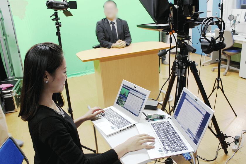 カメラプロンプターを用いて社長・経営陣による新年のメッセージを事前収録します。カメラ目線で台本を見ながら話すことができるため、内容の正確性と表現力が向上します。