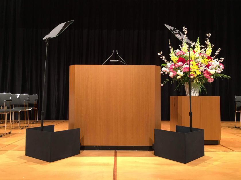 経営トップのご挨拶や方針発表、決算説明会など、失敗できない本番ほど“目線・間・原稿”の整備が成果を左右するため、スピーチプロンプターやカメラプロンプターの需要は高まりつつあり、今やフォーマルなイベントの必須機材であるという認識が広まっています。