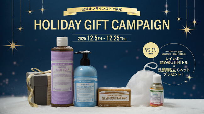 株式会社ネイチャーズウェイ(本社:愛知県名古屋市、代表取締役社長:萩原吉晃)は、アースフレンドリーなオーガニックボディケアブランド「ドクターブロナー」の公式オンラインストアで、クリスマスシーズン限定の「ホリデーギフトキャンペーン」を12月5日から開催いたします。