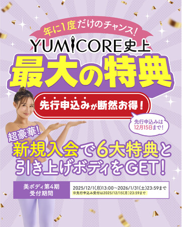 YUMICORE史上最大の特典「12ヶ月本気の美ボディプラン」第4期を12月1日より受付開始