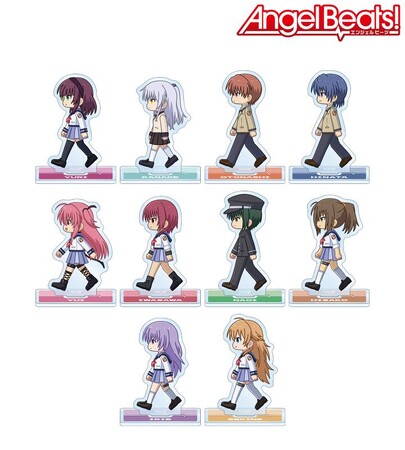 仲村ゆり、立華かなで、音無結弦、日向秀樹、ユイ、岩沢雅美、直井文人、ひさ子、入江、関根が歩いているちびキャラを新たに描き起こし、アクリルスタンドに仕上げました。