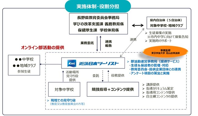 長野県では、特に中山間地における少子化や過疎化の進行による存続困難な学校部活動の増加、子どもたちのニーズの多様化と教職員の長時間勤務と指導の負担、さらに都市部と山間部との活動環境の格差が課題となっています。そこでICTを活用した指導の有効性に着目し、子どもたちが地域事情に左右されず多様なスポーツ・文化芸術活動に参加できる事例創出等を行うことを目的として、本トライアル事業を企画し、業務公募型プロポーザル実施の結果、本事業のパートナーとして、教育旅行および部活動関連事業で豊富な実績を有する近畿日本ツーリストを委託先に選定しました。