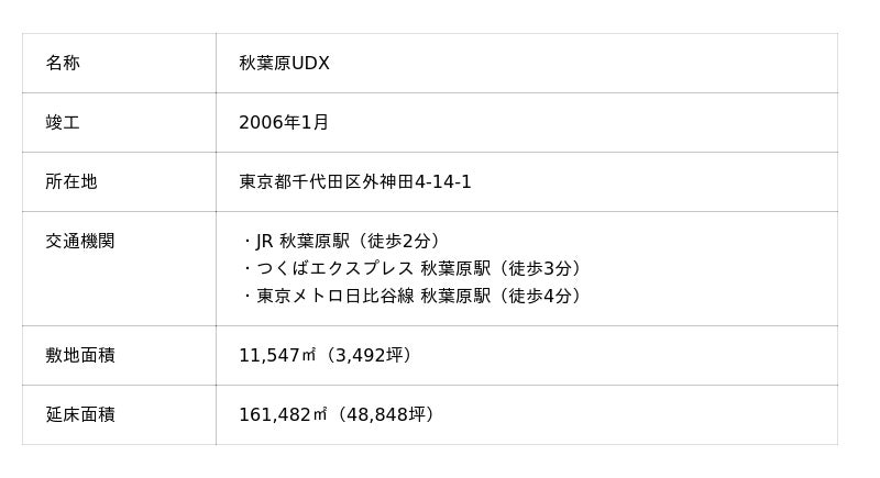 ・1階:福島屋、金子屋、ドコモショップ、三菱UFJ銀行ATMコーナー、秋葉原UDX内郵便局