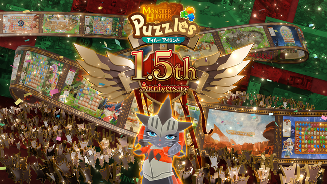 iOS/Android『モンスターハンターパズル アイルーアイランド』は、2025年12月26日(金)に、正式サービスを開始(2024年6月27日)してから1.5年を迎えます。 アニバーサリーの記念日に先駆け本日より1.5th アニバーサリー記念特設サイトを公開し、多数のイベント&キャンペーンを開催いたします。