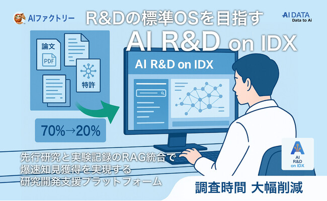 AIデータ社、R&Dの標準OSを目指す、「AI R&D on IDX」、先行研究と実験記録のRAG統合で爆速知見獲得を実現する研究開発支援プラットフォームへ