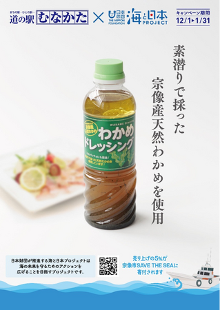 一般社団法人「海と日本プロジェクトinふくおか」(代表理事・小池 勝利)は、今年、取り組んで来た『むなかた海守り隊』の活動の一環として、宗像市が掲げる『Save the Sea』をスローガンとする様々な海の環境保全の活動を支持し、その活動を支援するために「道の駅むなかた」が販売する、手摘みわかめを商品化した『わかめドレッシング』を期間限定、数量限定で販売を開始しました。