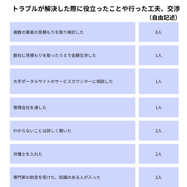 トラブル解決に役立った工夫や交渉(自由記述)