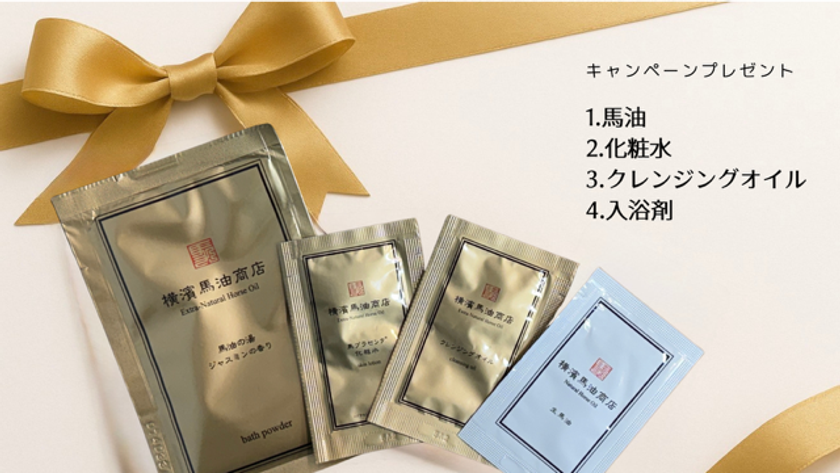 顔・全身の保湿に使える横濱馬油商店の馬油パウチセットをプレゼントいたします。宿泊ホテル先でも衛生的に使用できるよう、使いやすいパウチタイプにてご用意しています