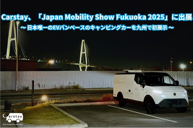 キャンピングカーと車中泊スポットのシェアリング・サービス、車両製造、改装支援など国内最大級のバンライフのプラットフォーム事業を展開するCarstay(カーステイ)株式会社(本社: 神奈川県横浜市、代表取締役:宮下晃樹(みやしたこうき)は、2025年12月18日(木)から12月21日(日)まで「マリンメッセ福岡」(福岡県福岡市)で開催予定の「Japan Mobility Show Fukuoka(ジャパン・モビリティ・ショー・フクオカ)2025」に出展します。