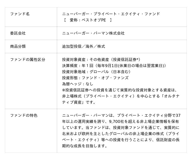 ニューバーガー・プライベート・エクイティ・ファンド ページ:https://www.jtg-sec.co.jp/toushin/fund/detail.php?label=nb_private_equity