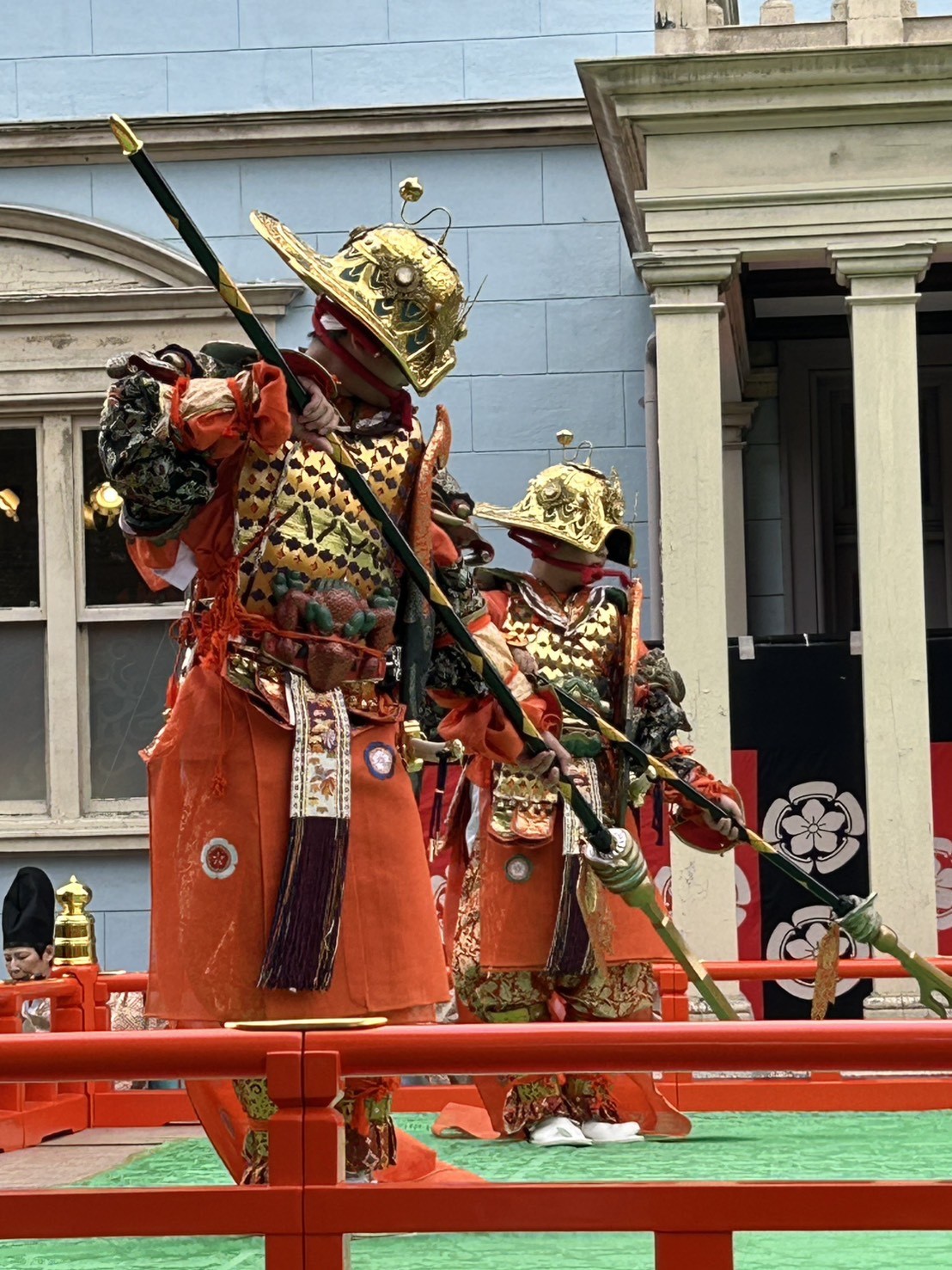 鉾を立てて舞台を入る「急重吹(しげぶき)」