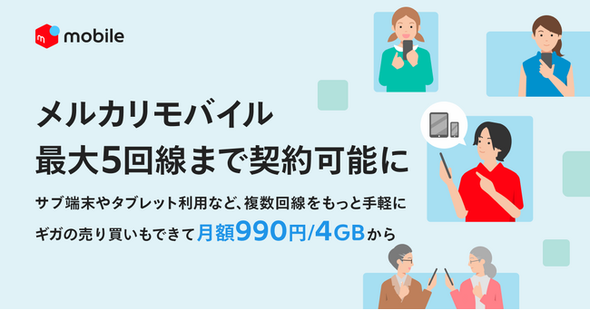 メルカリ、「メルカリモバイル」で最大5回線までの複数回線契約に対応