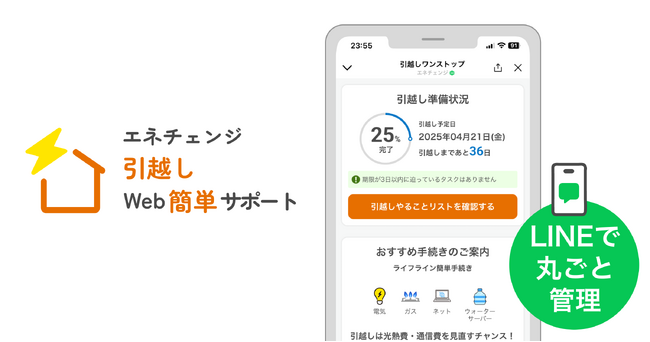 ENECHANGE(エネチェンジ)株式会社(本社:東京都港区、代表取締役CEO:丸岡 智也)は、引越しに伴うタスク管理やライフライン(電気・ガス・水道など)の手続きをLINE上で完結できる新サービス「エネチェンジ 引越しWeb簡単サポート」を、2025年11月25日(火)より提供開始しました。