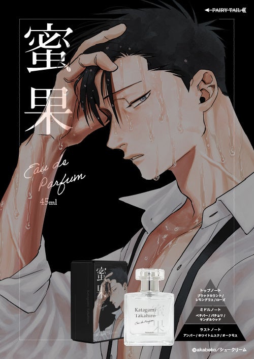 香水の輸入販売を手がけるフェアリーテイル株式会社(東京都港区)は、akabeko先生原作の『蜜果』より、「潟上貴宏」「須賀希雄」をイメージした香水を発売します。