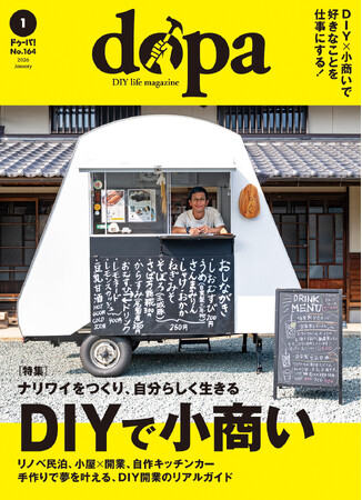 終身雇用の崩壊に、働き方改革……そんな社会の変化とともにワークスタイルにも変化が。近年、大掛かりな投資ではなく、自分の手で空間をつくり、身の丈に合った規模で商いを始める人が増加中。「DIY×小商い」で、趣味と仕事の境界を自由に行き来できる生き方を実現している。本特集では、そんなDIY×小商いをdopaならではの視点から徹底解剖。実例とノウハウを通じて、手づくりだからこそ実現できる働き方の可能性を探ります。[画像2: https://prcdn.freetls.fastly.net/release_image/60318/1138/60318-1138-16affe8f8e1ac80c1963c2cb0662510a-2433x1683.jpg?width=536&quality=85%2C75&format=jpeg&auto=webp&fit=bounds&bg-color=fff ]
