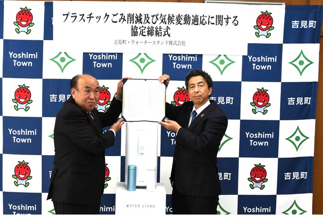 浄水型ウォーターサーバーのレンタル事業を行うウォータースタンド株式会社(本社:埼玉県さいたま市、代表取締役社長:本多 均、以下当社)は、2025年12月1日(月)に埼玉県吉見町(町長: 神田 隆)と「プラスチックごみ削減及び気候変動適応に関する協定」を締結したことをお知らせいたします。