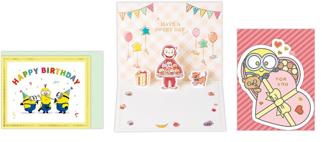「怪盗グルー/ミニオンズ」シリーズと「おさるのジョージ」の新作カードが登場! バレンタインや誕生日にぴったりのキュートなラインナップ