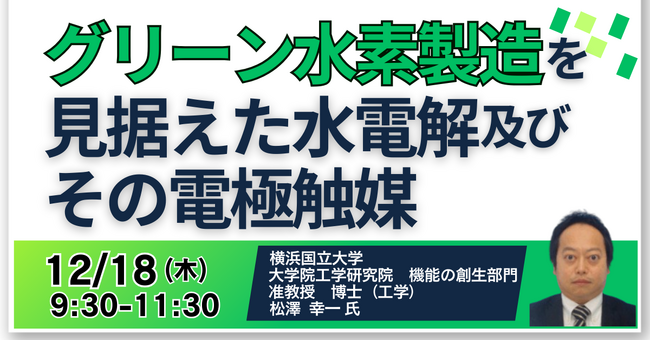 【JPIセミナー】「グリーン水素製造を見据えた水電解及びその電極触媒」12月18日(木)開催