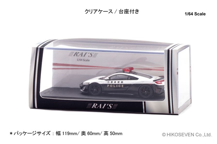 株式会社ヒコセブン(所在地:神奈川県横浜市、代表取締役:原島 行雄)は、オリジナルブランド「RAI'S」からダイキャスト製1/64スケール(約7cm)、ホンダ NSX (NC1) 三重県警察高速隊車両を2025年12月9日より直営店の「モデルギャラリーHIKO7」及び全国模型取扱店にて予約開始致しました。