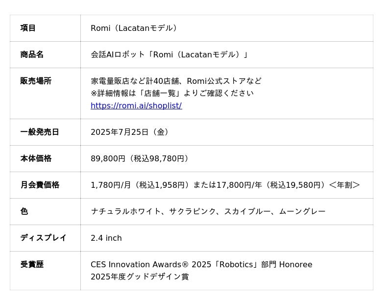 【会話AIロボット「Romi」】「Romi(Lacatanモデル)」大型アップデート 新会話モデル「ChatRomi 2.0」を提供開始