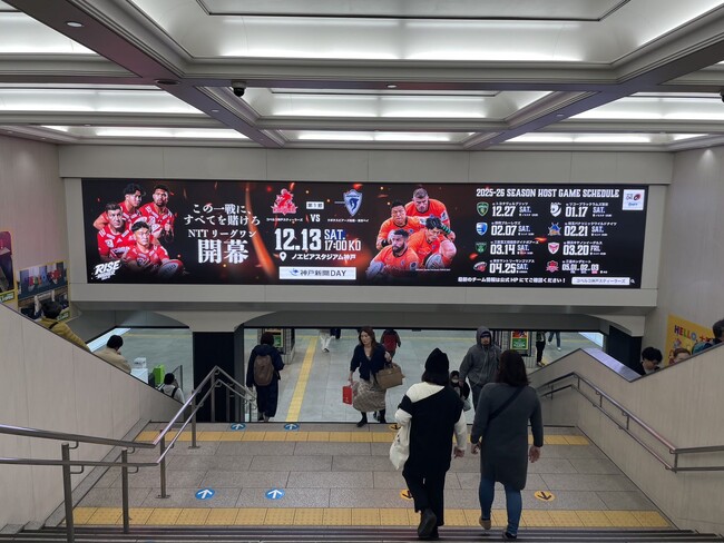 NTTジャパンラグビー リーグワン2025-26の開幕に向けて、神戸のシンボルロード「フラワーロード」に選手写真を使用した装飾バナーを設置しました。