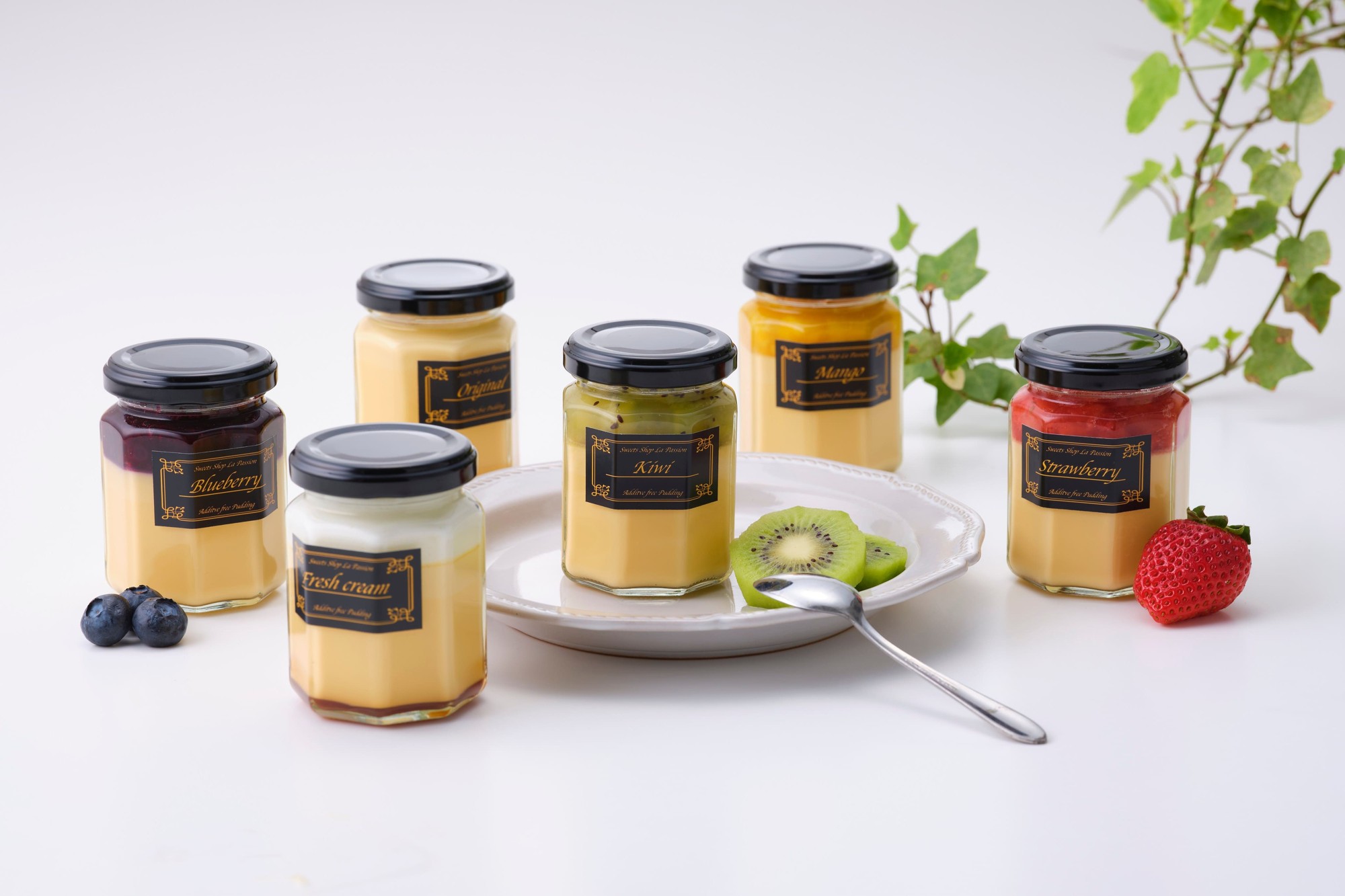 「ラムールプリン」はフランス語で"愛"を意味する名前の通り、大切な人に安心して贈れるプリンとして人気を博しています。全6種のフレーバーを展開し、オリジナル、生クリーム、ストロベリー、マンゴー、キウイ、ブルーベリーをラインナップ。
