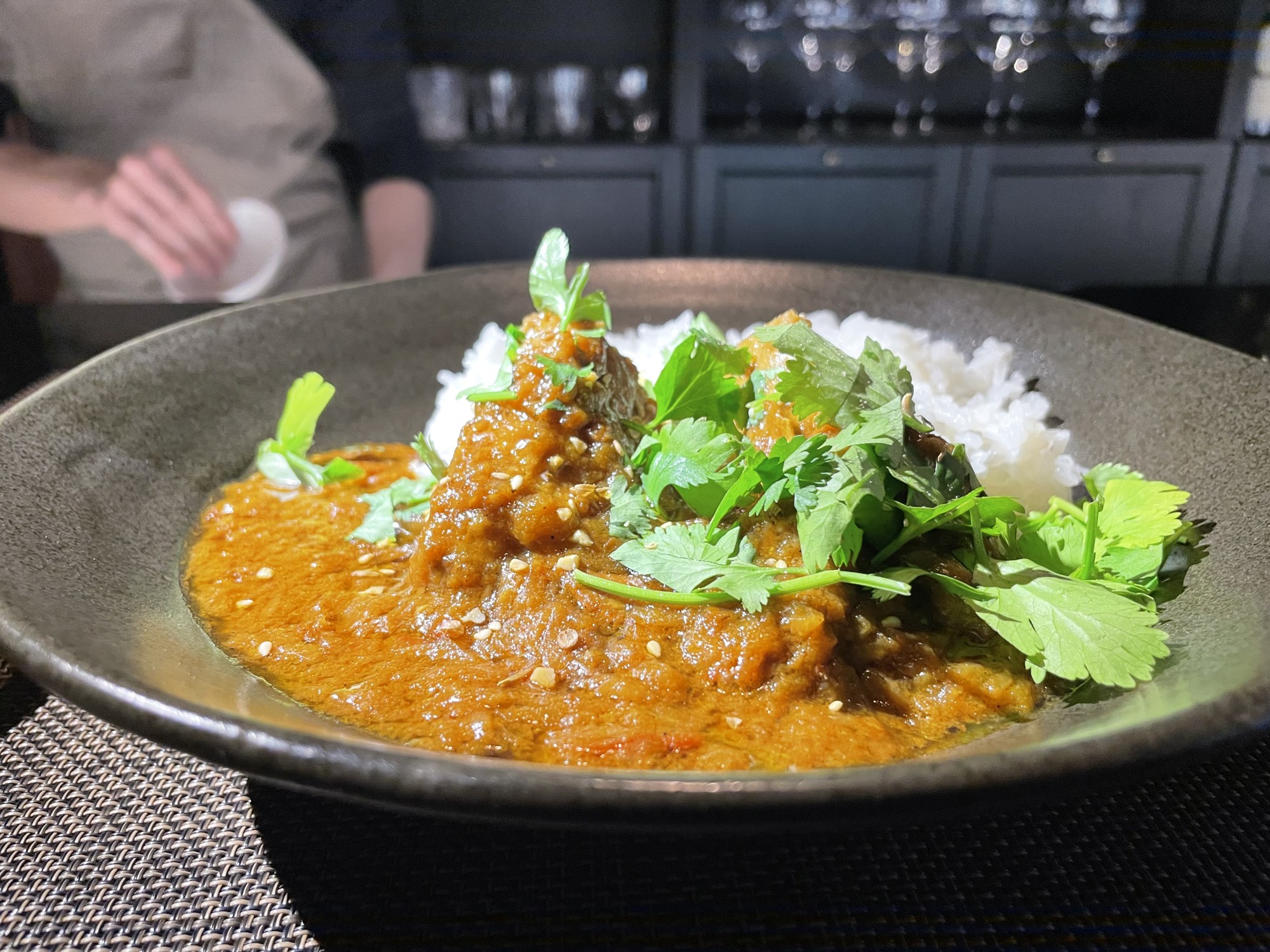 スパイスの香りに負けず、肉の深みが前面に出る重厚な一皿。