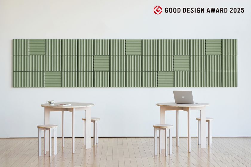 本製品は、2025年度グッドデザイン賞(主催:公益財団法人日本デザイン振興会)を受賞しており、デザイン性と環境配慮を両立した革新的な吸音パネルとして高く評価されています。