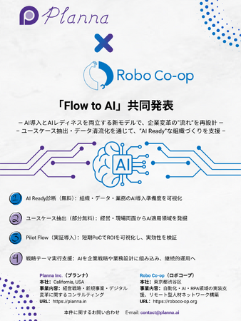 Planna Inc. と Robo Co-op、「Flow to AI」共同発表 AI導入とAIレディネスを両立する新モデルで、企業変革の“流れ”を再設計