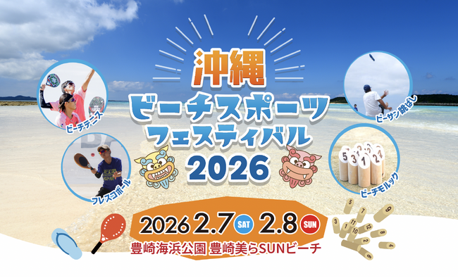 2月7-8日にビーチスポーツの祭典『沖縄ビーチスポーツフェスティバル2026』を開催することを発表。競技横断型で「三代目ビーチスポーツ王者」を決定します。