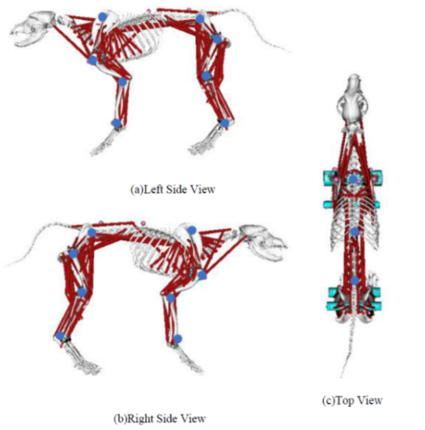 本研究は筋骨格解析技術を小型犬の歩行解析に応用した