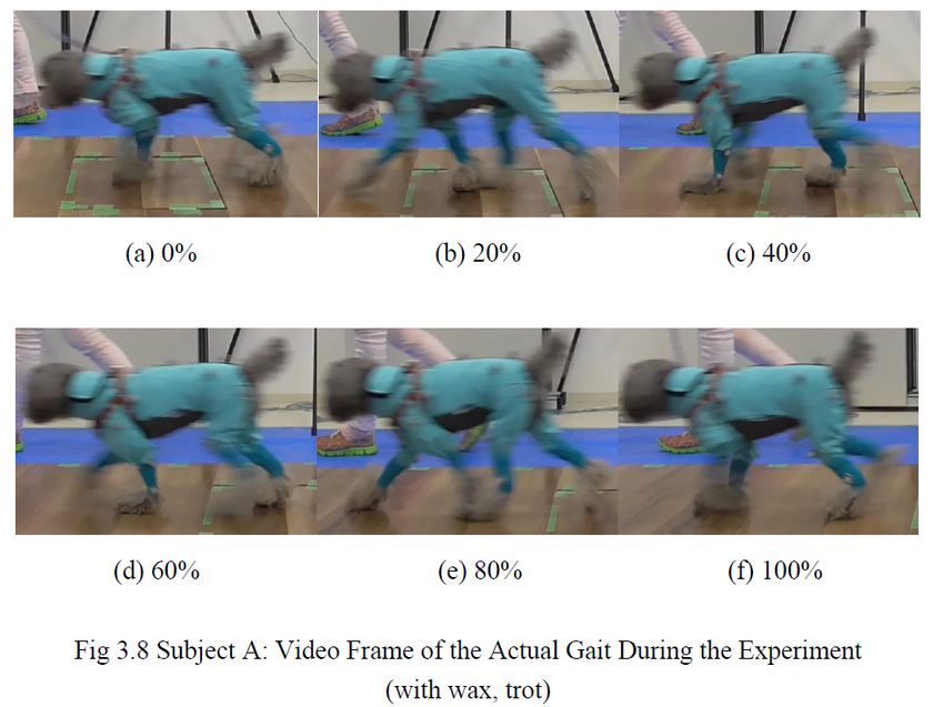 本研究ではリンレイ社の『滑り止め床用コーティング剤』塗布前後のフローリング床の滑りやすさ(摩擦係数)が、小型犬の歩行時における筋骨格*1系に与える影響を定量的に評価するため、フォースプレート、モーションキャプチャ、筋骨格*1シミュレーションおよびスティックピクチャーを用いて後肢の筋発揮量*3の変化を確認し、評価しました。