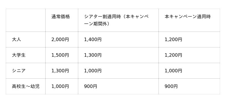 ・本キャンペーン対象外:一部の特別上映、プレミアペアシートなどの特別料金が設定されているシート。
