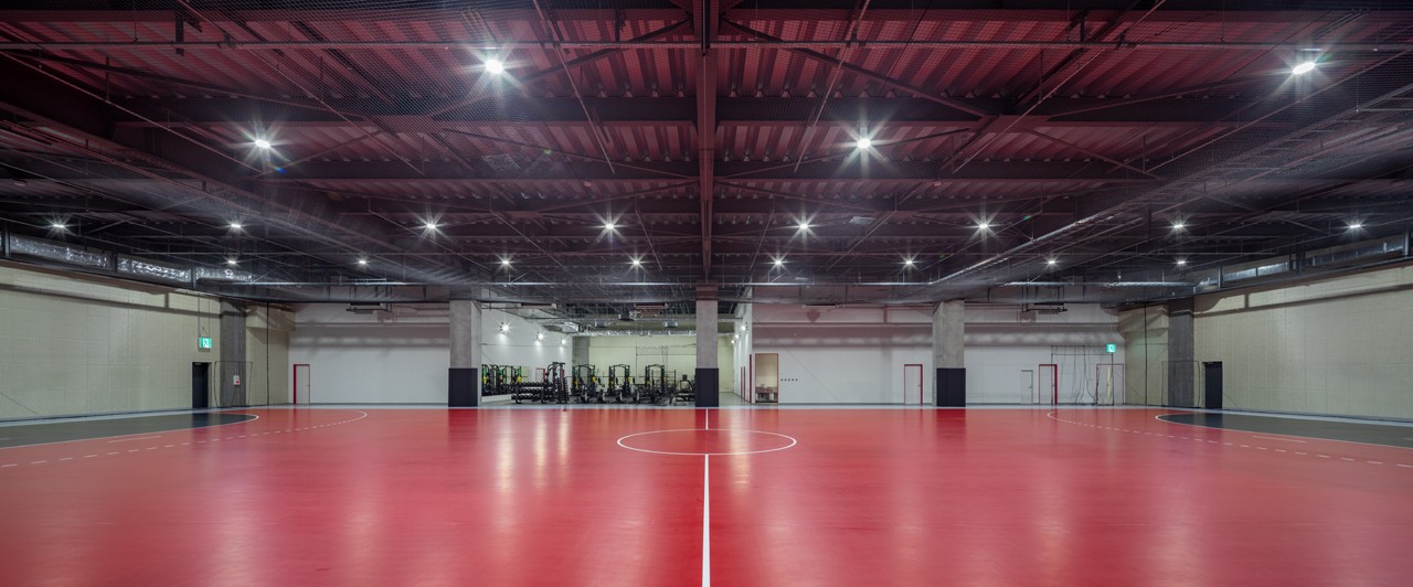 ハンドボールコート、ジムエリア、ケアルーム、リラクゼーションルーム、ロッカールーム、シャワールーム、ミーティングルーム等
