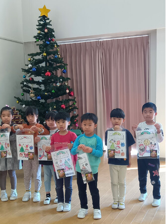 サンタさんへの感謝の気持ちを込めたメッセージカードづくりを実施。塗り絵をしながら、