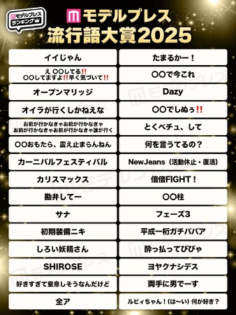 【モデルプレス流行語大賞2025】全30語を発表「両手に男でーす」「オープンマリッジ」「オイラが行くしかねえな」など Xで1800万インプレッションの反響、投票数約5万票、女性85.4%